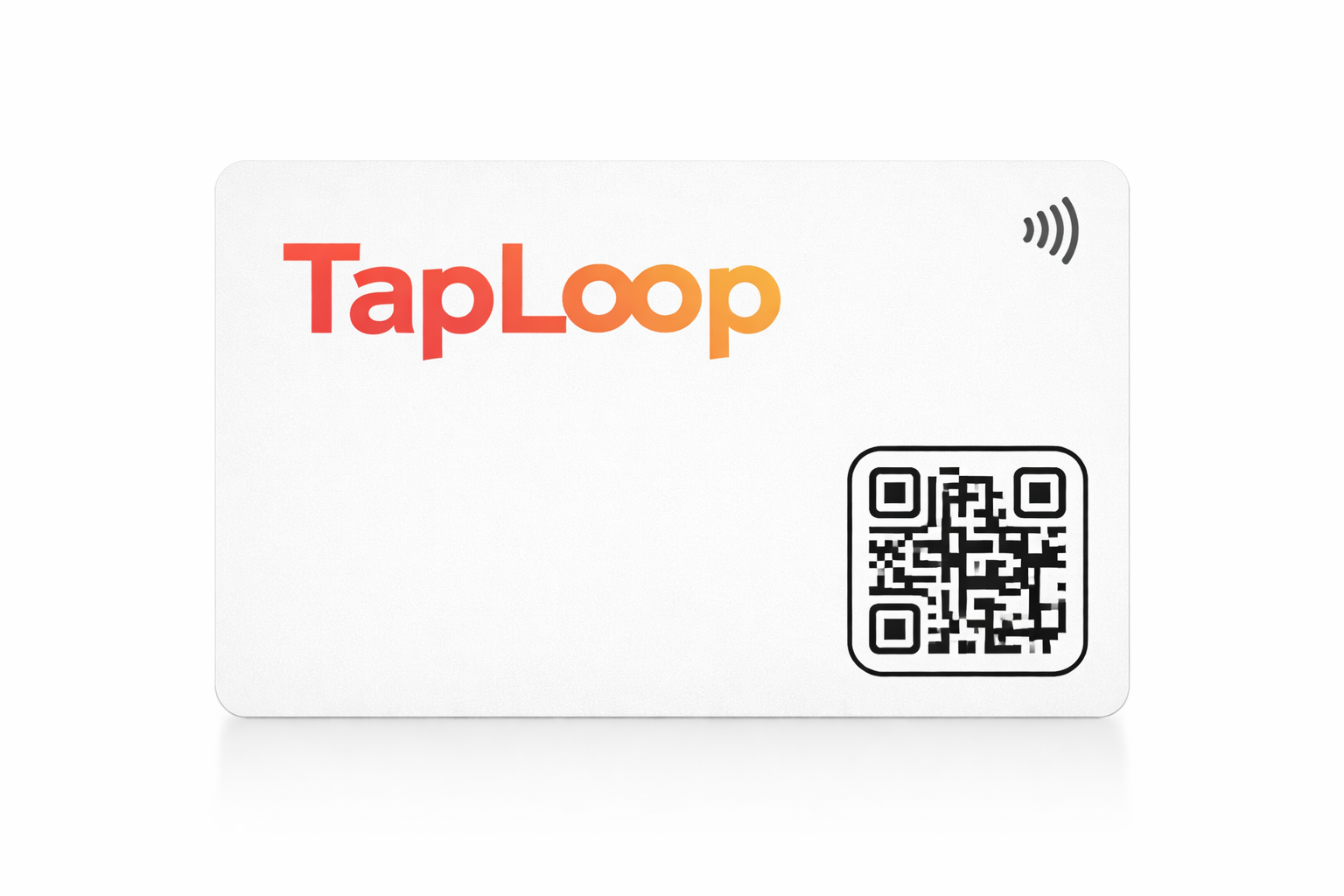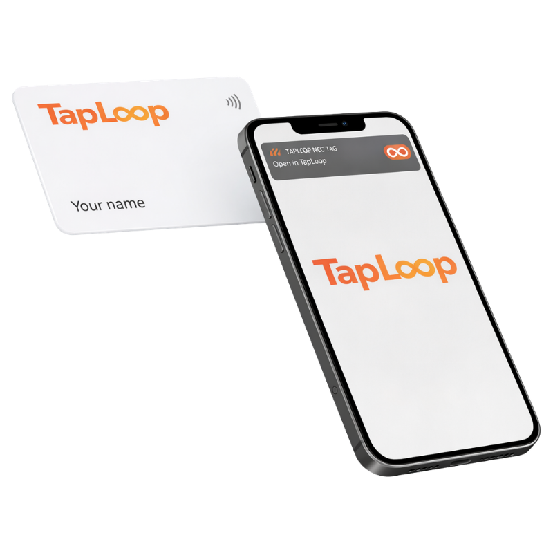 Los productos inteligentes NFC de TapLoop son tarjetas digitales innovadoras diseñadas para hacer que compartir e intercambiar tu información de contacto sea más rápido y eficiente. Con un simple toque en un teléfono compatible con NFC, se abrirá al instante un enlace con tus datos de contacto, listo para guardarse.