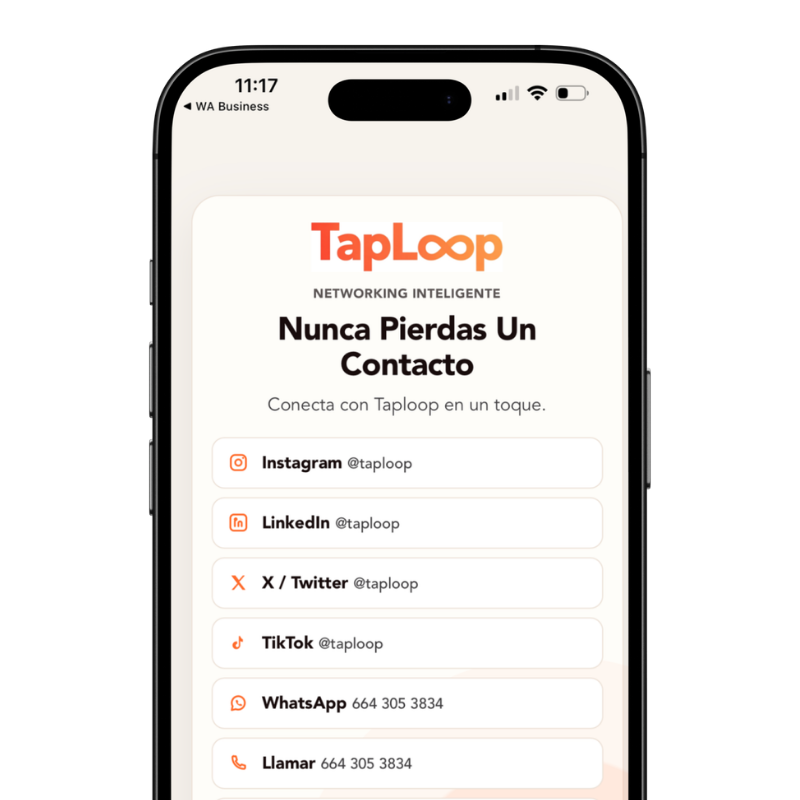 Ya sea en un evento, en una reunión o cerrando un trato, TapLoop te ayuda a compartir tu información al instante, dar seguimiento más rápido y no volver a perder un prospecto.